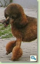 Descriere Pudelul are corpul acoperit cu par in totalitate, parul este vaporos, dens, ciufulit, moale la piupait si creste in orice sezon ceace impune tunderea lui regulata.Este foarte important faptul ca parul si daca este smuls creste la loc foarte repede. Cele patru varietati de Pudel sint diferite doar in dimensiune, avind aceiasi conformatie, corpul patrat, mers mindru si elegant, spatele este scurt, burta trasa in sus, ochi negri sau maro, nasul negru sau maro culoare care se intilneste la Pudelii maro sau caisa, coada este mare si sta dreapta in sus si pe spate.